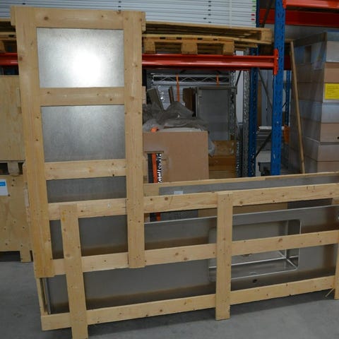 Bänkskiva för kök i ljusgrått laminat nr 2454. Mått: längd 3739 mm, djup 640 mm, tjocklek 20 mm. Inkluderar en underlimmad diskho i rostfritt stål, modell L30hme 875X V. Det finns även en utskärning för häll med måtten 605 x 505 mm.