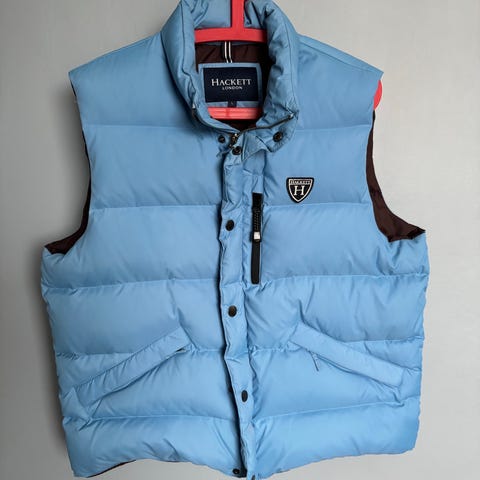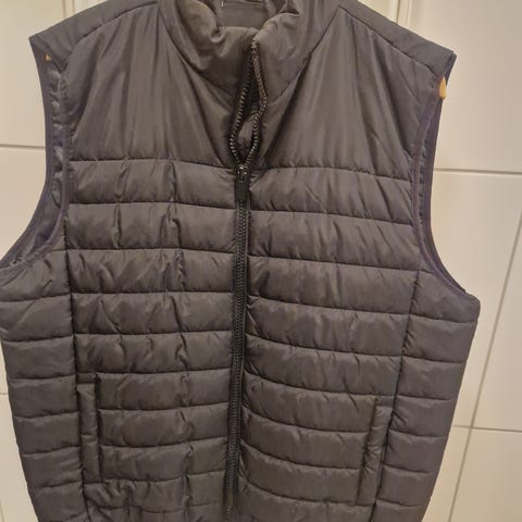 Knappt använd maringrön dunväst, lätt och enkel att bära. Två sidfickor med dragkedja och två innerfickor.