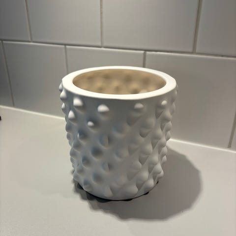Krukan Cloudy designad av Hanna Wessman för DBKD i snygg vinröd kulör. Diameter 30 cm, höjd 25 cm. I skick som ny. Nypris cirka 1000 kronor. För prisuppgifter se exempelvis Svensson eller Nordic Nest.