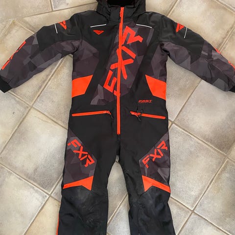 Scott Snowmobile overall för barn i storlek 140. Overallen är huvudsakligen svart med grå och orangea detaljer samt hel dragkedja framtill. Modellen har huva, flera fickor med dragkedja och förstärkningar på utsatta partier. Avsedd för snöskoterkörning och andra vinteraktiviteter där ett heltäckande plagg behövs för skydd mot kyla och snö.