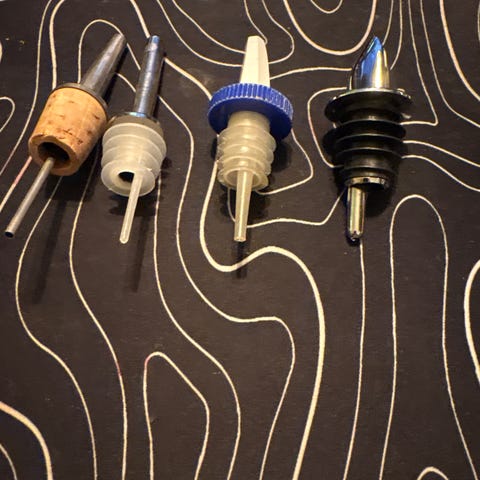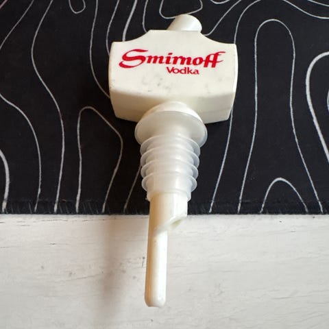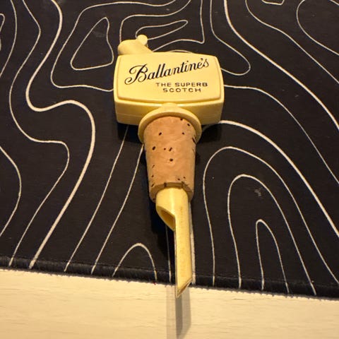 Ballantine’s spritmått i vit plast. Skruvlock och integrerad pip för dosering och upphällning av sprit, anpassad för Ballantine’s-flaskor. Lämplig som reservdel eller tillbehör för servering av whisky eller annan sprit ur flaska.