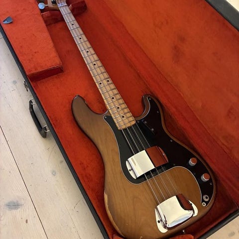 Jag har en Fender P-Bas American Vintage Reissue (Avri) V-serie 1996-1997 med en original 70-tals Fender Precision Bass lönnhals.