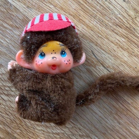 Säljer en klassisk Monchhichi-docka från välkända Sekiguchi. En äkta retro- och samlarpryl från 80-talet i fint begagnat skick. Dockan har sin ikoniska haklapp och kan suga på tummen.
