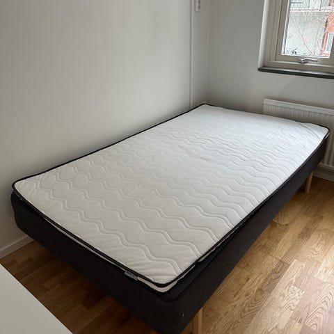 Säljer min gamla sänggavel, 120 cm bred, synligt använd med lite missfärgning, syns på första två bilderna, tredje bilden visar på hur färgen är i verkligheten.