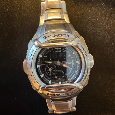 Baksidan har skruvad boett i metall med G-Shock-markering.