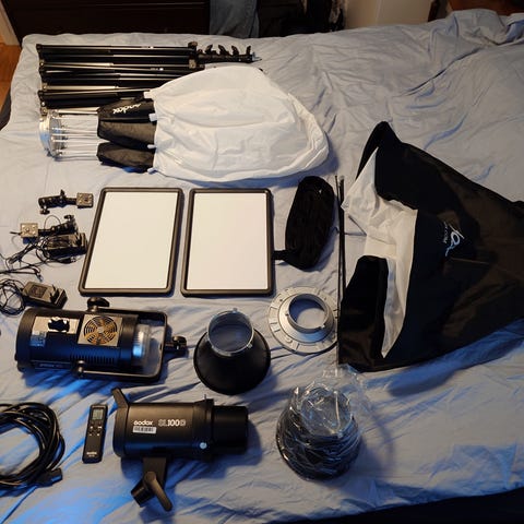 Säljer ett komplett och smidigt studioblixt-kit med två stycken Godox AD200 (Witstro) samt tillbehör. Perfekt för porträtt, branding, mode, content eller mindre studiouppsättningar.