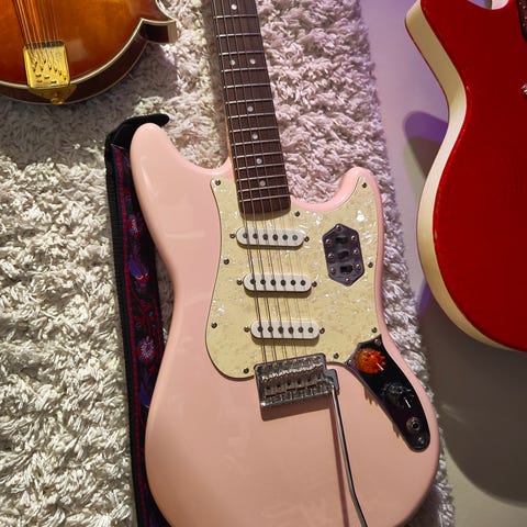 Ovanlig CBS vintage gitarr i mycket fint original skick. Finish i nitro cellulosa Dakota Red! Orörd elektronik. Caset i fint skick med alla lås. Tremolo arm och putstrasan kvar. Serienummer #212912. Halsen stämplad Nov 67. En investering. Såldes i ”Student Kit” med en Bronco förstärkare. (Finns i annan annons här på Blocket.)
