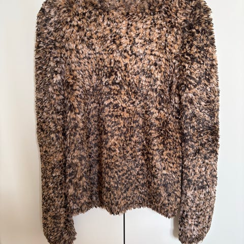 Svart ribbstickad tröja med en modern design. Tröjan har en krage och en V-ringning som ger en stilren look. De långa ärmarna är voluminösa med en åtsittande mudd vid handleden. Passformen är kortare, vilket gör den enkel att kombinera med olika underdelar. Storlek XS/S men mer en S. Lite smått nopprig men inte så mycket, se bilder för att avgöra