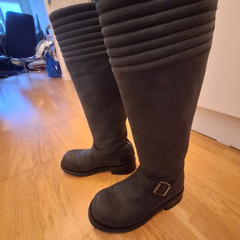 Ett par svarta stövlar med dragkedja bak och spänne på sidan. Enkel "flärp" på insidan som man använder för att ta på sig stövlarna enklare samt stänga dem. Dessa är en av Primeboots bästa modeller. Rekommenderar att köpa ny innersula.