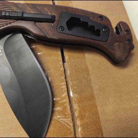 Denna Buck fällkniv har ett kamouflage handtag och är designad för praktisk användning. Kniven har en robust konstruktion och är lämplig för utomhusaktiviteter. Den är utrustad med en klämma för enkel bärning samt med fönsterkrossning och bälte klipp funktioner! Kniven är i original förpackning. Perfekt för friluftsliv eller som en del av din samling. Längden är ca 21 cm (bladet är 9 cm)