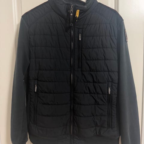 Parajumpers Fleece & Puffer jacka för herr i storlek M. Jackan är grå och tillverkad i polyester. Modellen har quiltad front och rygg med släta ärmar, ståkrage samt hel dragkedja framtill. Bröstficka och sidofickor med dragkedja. Parajumpers-logotyp på ärmen och karakteristisk gul remdetalj vid kragen. Passar som ytterjacka i svalare väder. Bra skick varsamt använd