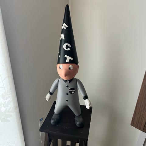 Här har vi en vit, handmålad Nils Olsson-dalahäst – och inte vilken som helst. Den är klädd i klassiskt kurbitsmönster i rött, blått och gult, som om midsommar och folkdans fått ett designmöte. Under halsen står dessutom “2022” och “Best Nude” vilket gör den till den modigaste hästen i Mora.