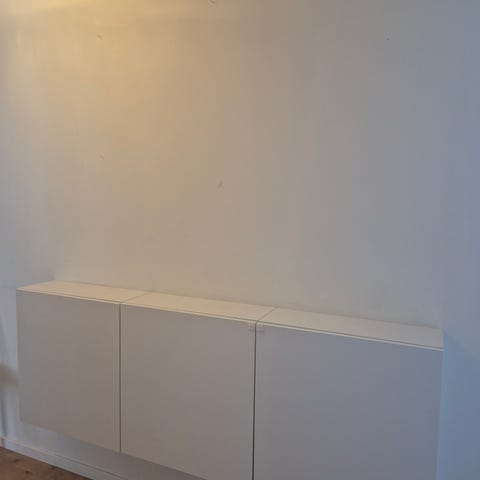 Passar för förvaring av böcker, papper eller andra mindre föremål i exempelvis hall, sovrum eller vardagsrum. Enkelt, slätt utförande i vit färg med runda handtag på dörrarna.