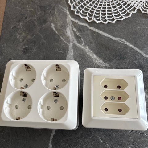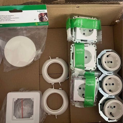 Schneider Electric vägguttag för infällt montage i vägg med lock, utan ram.