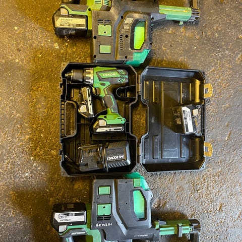 Hilti elverktyg sats i röd färg. Paketet innehåller flera batteridrivna maskiner och flera batterier, lämpliga för olika typer av bygg- och renoveringsarbeten. Verktygen är avsedda för professionellt eller avancerat hobbybruk där flera olika maskiner behövs i samma system.