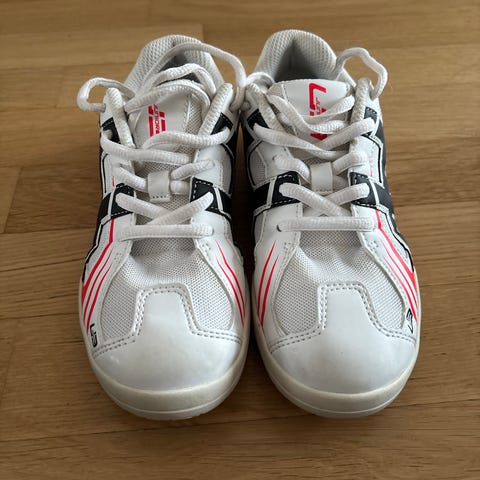 Skorna har snörning och sula anpassad för inomhusbruk, exempelvis handboll eller annan hallidrott. Yttermaterial och sula är utformade för bra grepp på inomhusgolv. 250kr/par.