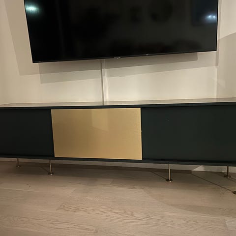 Säljer en stilren och exklusiv Vogue skänk från Decotique, 136 cm. Skänken är i mycket fint skick och väl omhändertagen. Det finns endast två mycket små repor på sidorna av dörrarna, nästan osynliga (se bilder).