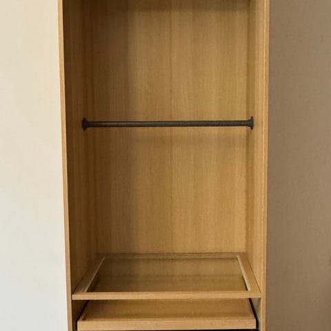 Stor vit PAX garderob från IKEA. Superfräsch och känns fortfarande väldigt ny (inköpt sommar 2024). Får plats med massvis av kläder!