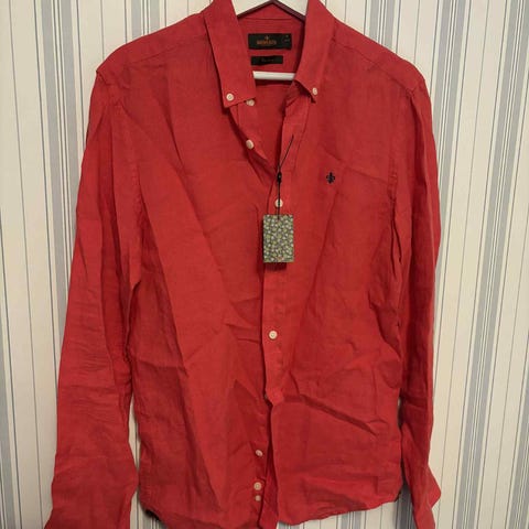 Gant Reg Cot/Linen jeans för herr i färgen blå (Evening Blue). Byxorna är tillverkade i en bomulls- och linnemix för en lätt och bekväm känsla. Storlek M med midjemått W33 och längd 32. Klassisk femficksmodell med knapp- och gylfstängning samt Gant-logotyp på läderpatch bak. Passar som vardagsbyxa eller för mer avslappnade tillfällen.