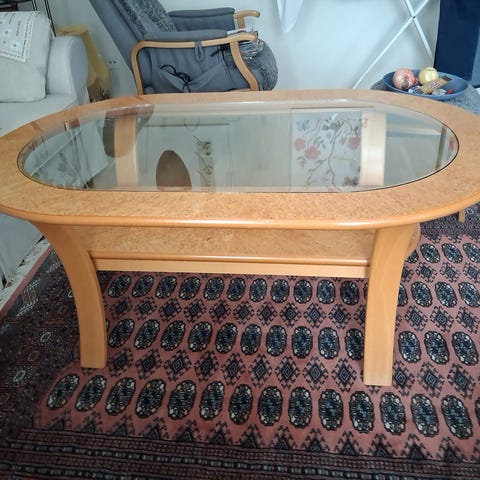 Mått: 160 x 70, 52 cm högt, hylla under.