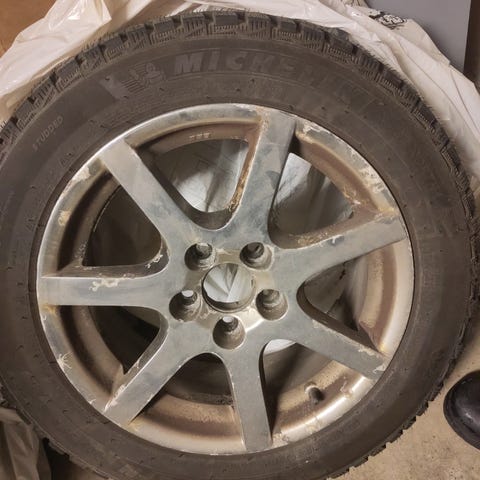 Däcken är slut men fälgarna är i fint skick.