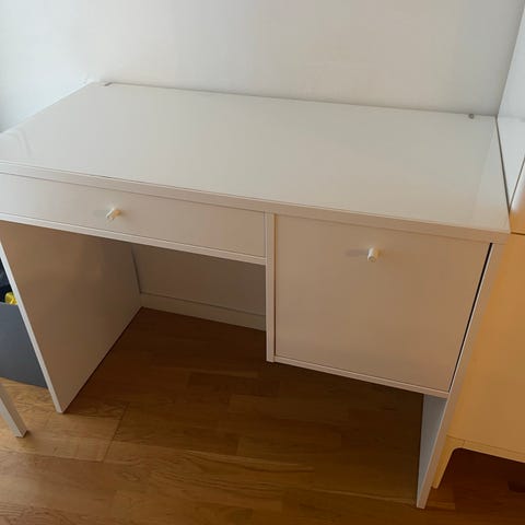 Har ett sminkbord i fint skick med spegel, lampor samt en sittpall