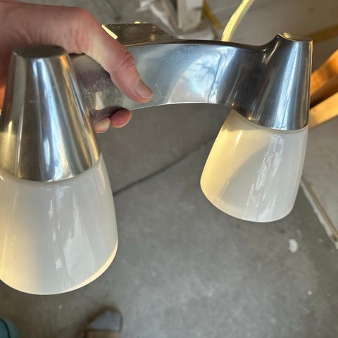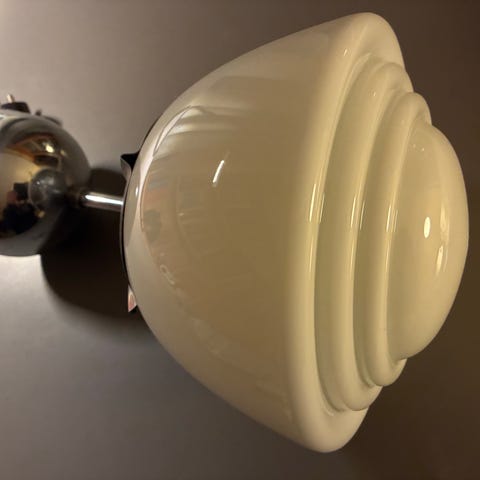 Kromad arm med vit glasskräm, avsedd för montering på vägg, t.ex. vid eller ovanför spegel.