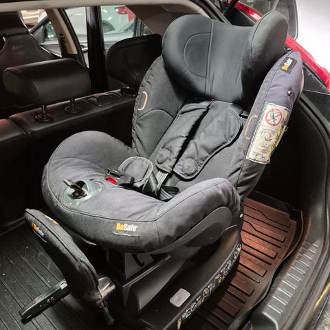 BeSafe bilbarnstol i storlek 25. Bakåtvänd bilbarnstol med intern 5-punktssele och sidokrockskydd. Klädsel i svart textil. Passar barn enligt storlek 25-specifikation. Monteras med bilens bälte enligt anvisningarna på stolen. Lämplig för användning i baksätet utan aktiv krockkudde framför.