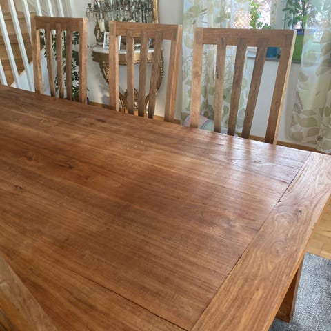 2 teakstolar med skinndyna