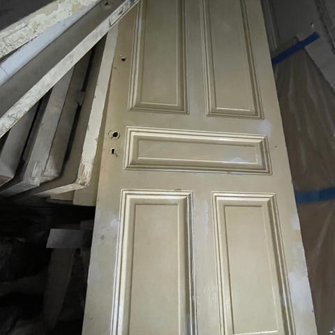 2 st använda vita innerdörrar med klassisk spegelindelning. Dörrbladen är inplastade i originalförpackningen och har förborrade hål för handtag och lås. Passar som innerdörrar i bostad, exempelvis till sovrum, vardagsrum eller hall.