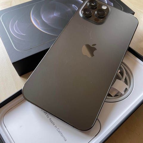 Hej. Hjälper morsan och sälja sin iPhone 12 Pro Max graphite 128GB. Inga sprickor och inga repor fram eller bak, inga kantstöd, alltid varit i skal. Face ID och alla kameror funkar som dom ska. Batteri hälsan ligger på 86% men upplever den som sämre, kan bero på att den laddades med liten laddare, kanske den behöver starkare. Kommer med original lådan och en skal. Finns i Växjö.