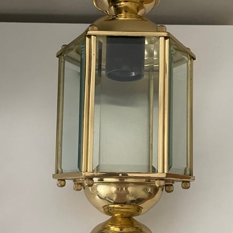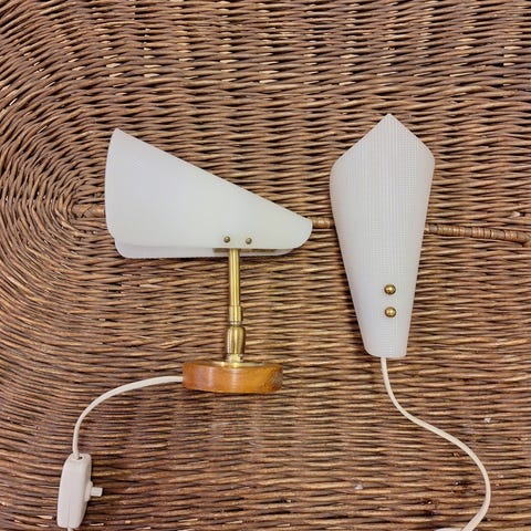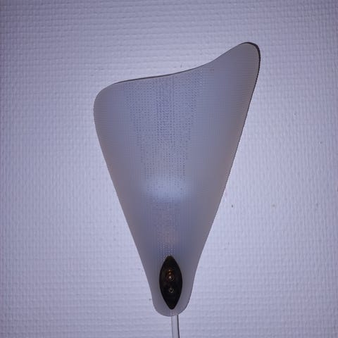 Vägglampa med dekorativt glas. Höjd 17 cm, bredd 11 cm.