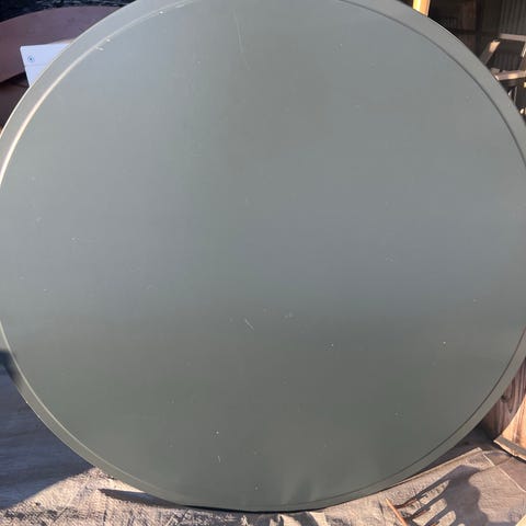 Runt soffbord med glasskiva. Finns att hämta på Södermalm.