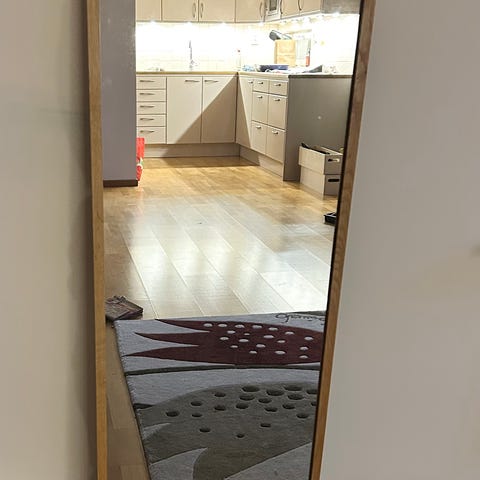 Säljer en stilren spegel med silverfärgad ram. Kan användas som golvspegel, lutas mot vägg eller placeras liggande ovanpå ett vitrinskåp (så har vi haft den i vardagsrummet). Passar fint i sovrum, hall eller vardagsrum och ger rummet extra ljus och rymd.