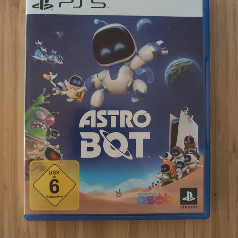 Astro Bot spel för Playstation 5. Fysiskt spel på skiva i blå plastfodral. Avsett för användning med Playstation 5-konsol.