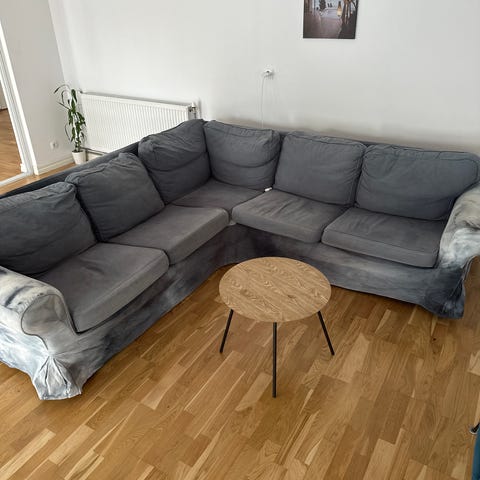 Mio hörnsoffa tyg blågrå ca 260x210 cm