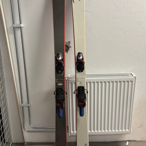 En större repa i belaget på ena skidan.