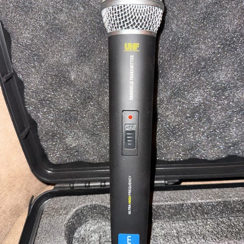 Kam KWM1932 V2 trådlöst mikrofonsystem med UHF-teknik. Systemet består av mottagare, handhållen mikrofon, bodypack-sändare och nätadapter, levererat i skyddande väska med skumfack. Mottagaren har reglage för nivå samt indikatorlampor på frontpanelen. Bodypack-sändaren är avsedd för anslutning av kompatibel mikrofon eller headset via kabel. Systemet är lämpligt för tal, presentationer och liknande ljudapplikationer där trådlös överföring önskas.
