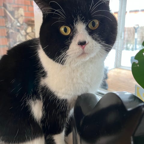 Här är Tim, en stilig blandraskille i sina bästa ungdomsår som nu letar efter en passande tjej. Han är en perfekt mix av svart och vitt, med ett hjärta av guld. Hans mamma är Ragdoll och pappan är Brittisk långhårig.