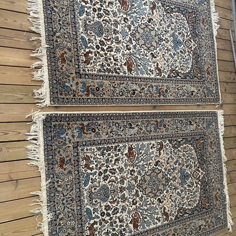 &Tradition matta med orientaliskt inspirerat mönster i beige och grå toner. Rektangulär form med bård runt kanten och tät mönsterbild i mitten. Passar exempelvis i vardagsrum, sovrum eller hall. Material och exakta mått är inte angivna av säljaren.