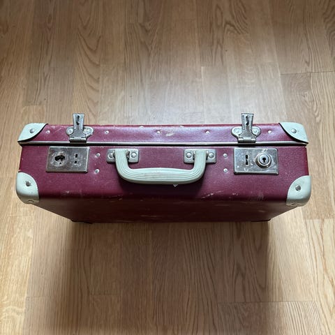 Charmigt begagnat vintageskick. Rena och fina invändigt med spännremmar kvar.