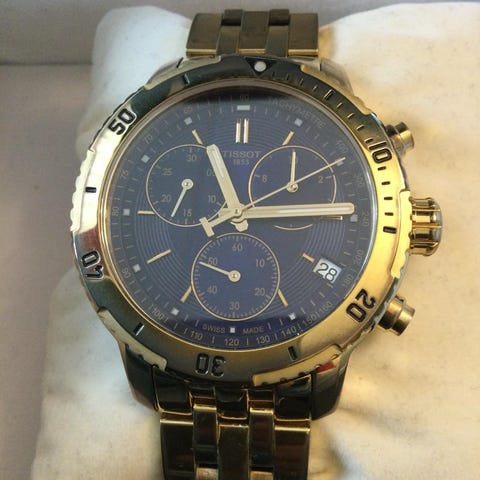 Säljer nu min Tissot PRS 200 Chronograph. Det är en rejäl och snygg klocka som kombinerar sport med elegans tack vare "two-tone"-utförandet (stål och guld-PVD).
