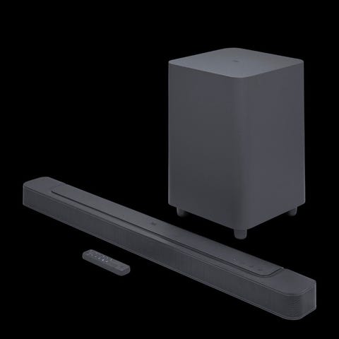 JBL 9.1 Soundbar 3D Surround med Subwoofer Ett mycket bra högtalarsystem för TV som ger strålande ljud och bas. På sidorna av plankan kan man separera två högtalare som kan placeras på baksidan av rummet för att aktivera 3D-ljud, dessa är trådlösa och laddas automatiskt när de kopplas till plankan igen. Fjärrkontroll för styrning av högtalarsystemet ingår.