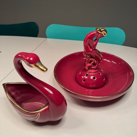 Skål Upsala Ekeby Arthur Percy Gefle porslinsfabrik med blomminsats grön keramik