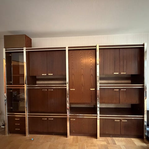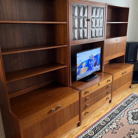 Bokhylla med vitrinluckor. 1900-talets mitt.