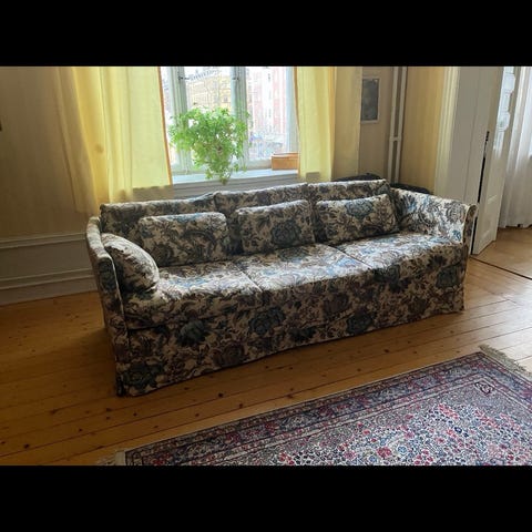 Bekväm brun soffa i gott skick, ingen skador eller fläckar och fel , hel fräsch och Ren. Avtagbar tvätt klädsel på dynor