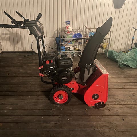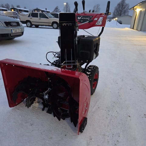 Snöslungan har vissa lackskador som inte hindrar dess funktion. fräsmaskinen har en ny drivrem och ett nytt friktionshjul.