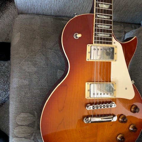 J&D Brothers elgitarr i singlecut‑modell med sunburst‑finish. Gitarren har två humbucker‑mikrofoner, trevägsomkopplare och separata reglage för volym och ton. Greppbräda med blockinlägg och kropp med svart plektrumskydd. Levereras med vadderat SE‑gigbag enligt bild. Passar för elgitarrspel inom olika musikstilar.