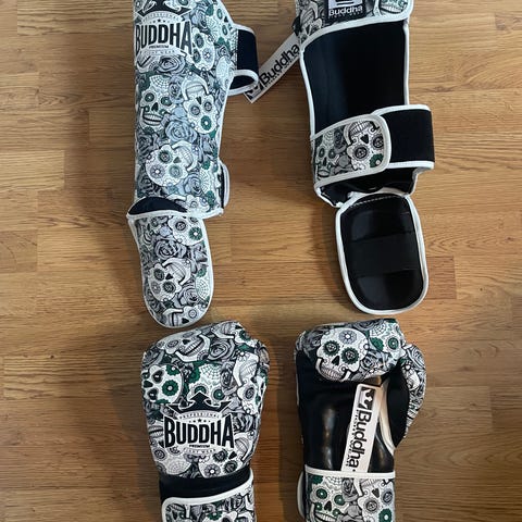 Benskydd och handskar för thaiboxning (Muay Thai), kickboxning, MMA, m.m.