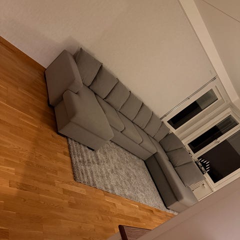 Köpt från chilli en jättefin U-soffa och otroligt bekväm, tyg är tvättbar. Varsamt andvänt, kommer från ett djur & rökfritt hem. (Ingår även små kuddar som jag aldrig använt, ligger förpackade. Samma tyg som soffan) Säljes endast pga flytt till mindre. Ord. Pris 19 394kr